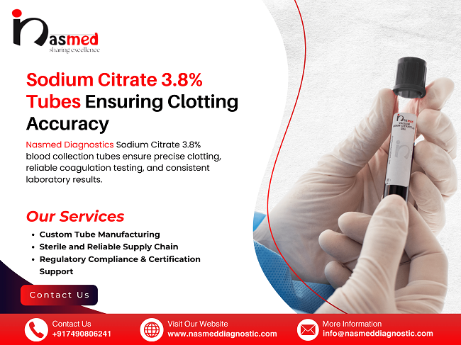 Nasmed Diagnostic Pvt Ltd is a reliable producer of diagnostic supplies, serving both Indian and global territories. With years of expertise in creating premium blood collection vials, Nasmed Diagnostic ensures that testing facilities, hospitals, and diagnostic networks have access to Sodium Citrate 3.8% Vials that meet worldwide benchmarks. Discover more about their offerings and proficiency at https://www.nasmeddiagnostic.com/.